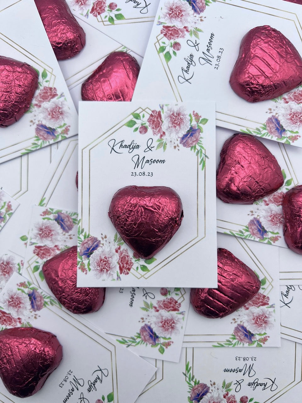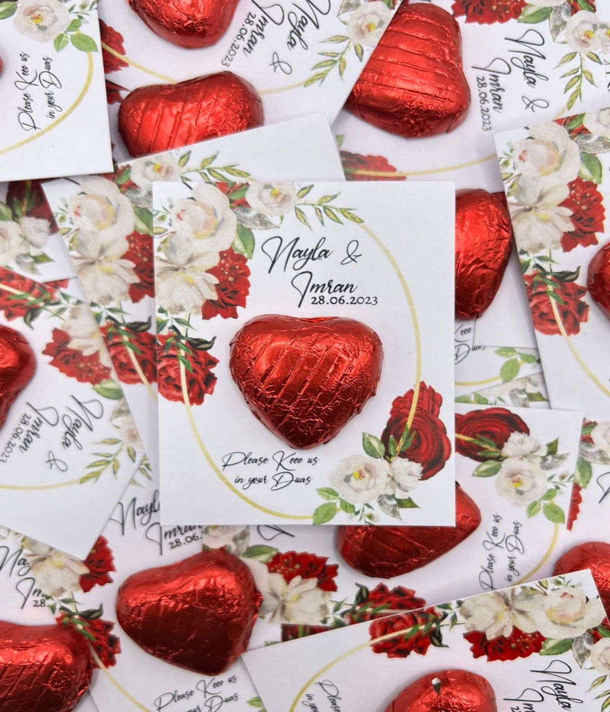 5grams chocolate heart available on a personalised card and design available in over 10 colours of hearts